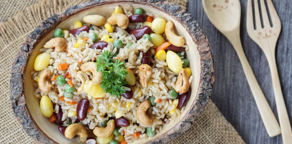 เอาใจคนชอบเคี้ยวธัญพืชกันสักมื้อกับเมนูข้าวผัดธัญพืช สูตรจาก เฟซบุ๊ก Homemade Clean Food ใส่เนื้อไก่ผัดกับข้าวกล้อง ที่ขาดไม่ได้เลยคือ ธัญพืชหลากชนิด กินกับไข่ดาวพริกหยวก