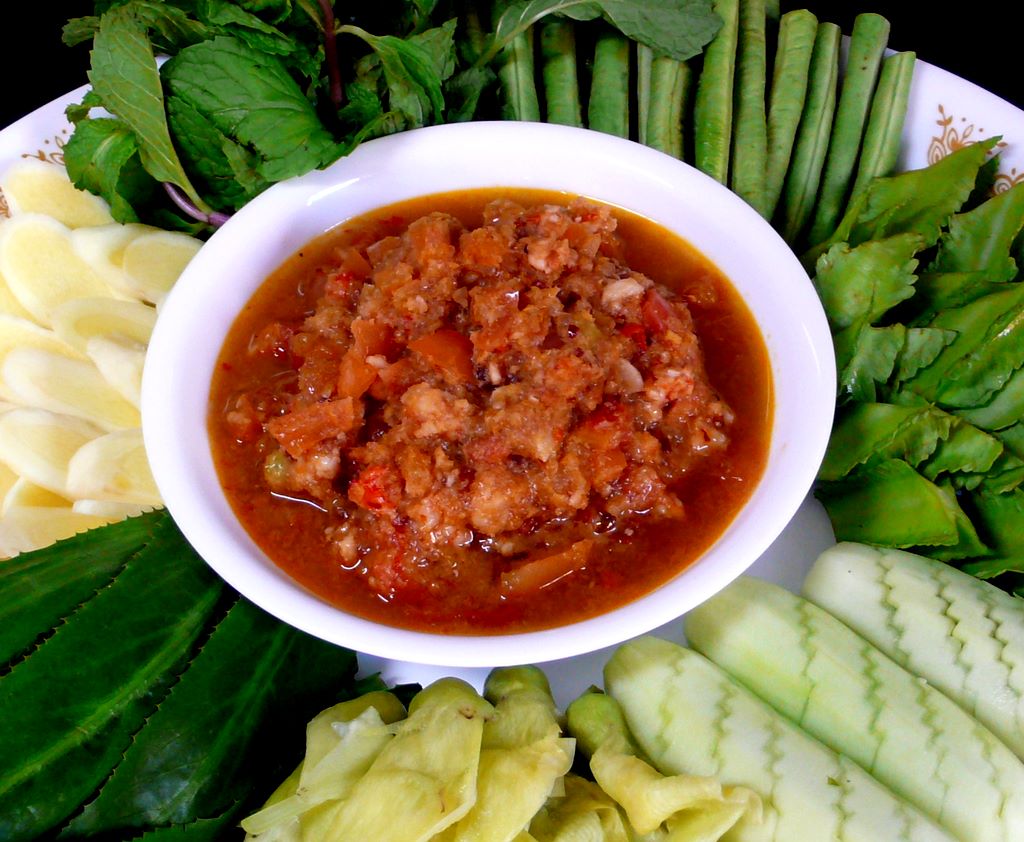 3. ใส่มะเขือเทศลงไปผัดจนเกือบเละ ปรุงรสด้วยเกลือ น้ำมะขามเปียก และน้ำหวานดอกมะพร้าวเล็กน้อย จัดเสิร์ฟพร้อมข้าวกล้องกับผักสด