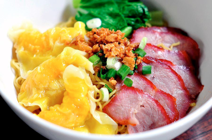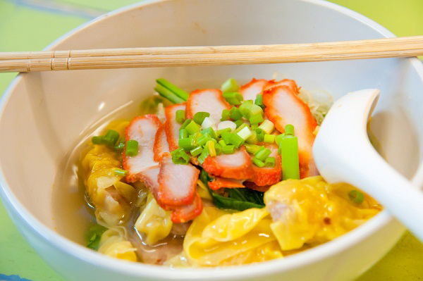3. ตักน้ำซุปผักราดลงบนตัวเกี๊ยว ใส่ผักกวางตุ้งลวกและไก่แดงลงไป โรยผักชี พร้อมเสิร์ฟ