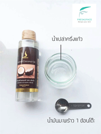 - ใส่น้ำมันมะพร้าวสกัดเย็น 1 ช้อนโต๊ะ