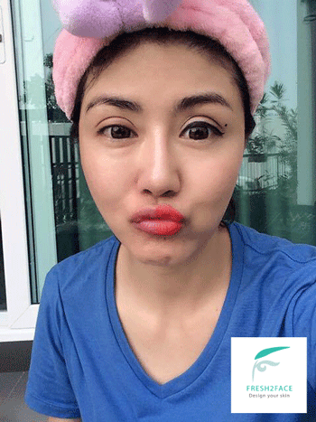 ต่อมาก็ไปตาเลยค่ะ Eye liner ทิ้งไว้ 20-30 วินาทีเช่นกัน (ไม่เข้าใจทำไม ต้องปากจู๋ ^^")