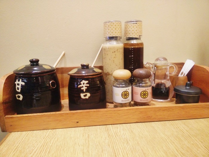 จริงๆ ทางร้านยังมีซอสและเครื่องปรุงให้เลือกปรุงได้อีกเพียบเลย เรียกได้ว่า หมูทอด หั่นออกมา 6 ชิ้น