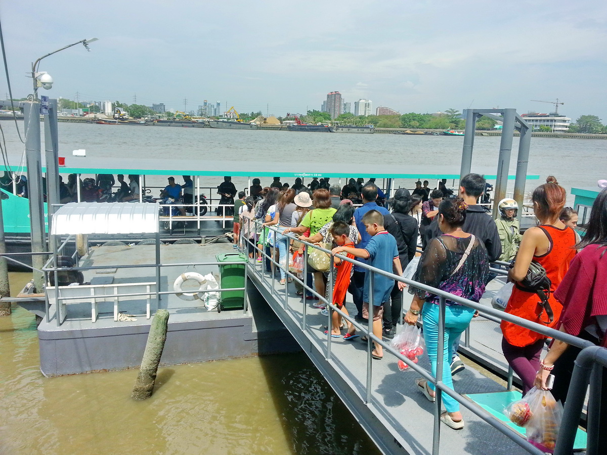 เนื่องจากบ้านเราอยู่แถวบางนา ก็เลยเลือกที่จะเดินทางด้วยเรือข้ามฟากค่ะ ... เริ่มต้นจากสี่แยกบางนา เข้าไปทางถนนสรรพาวุธ จนสุดถนนเจอแม่น้ำเจ้าพระยา (ถ้าไม่มารถส่วนตัวก็สามารถนั่งรถไฟฟ้ามาลงสถานีบางนา แล้วเดินย้อนกลับมานิดจนถึงสี่แยก เลี้ยวซ้ายเข้าไปจะมีรถสองแถวสีแดงวิ่งเส้นสรรพาวุธอยู่ค่ะ ขึ้นไปลงที่ท่าเรือได้เลย) ...ท่าเรือจะอยู่ในวัดบางนานอกค่ะ เรือบรรทุกได้ทั้งคน รถมอเตอร์ไซด์ และจะหอบหิ้วจักรยานไปปั่นชิลชิลในสวนที่บางน้ำผึ้ง หรือบางกระเจ้าด้วยก็ได้ .. ค่าโดยสารคนละ 4 บาทค่ะ (ถ้ามีรถไปด้วยก็ 6 บาท)