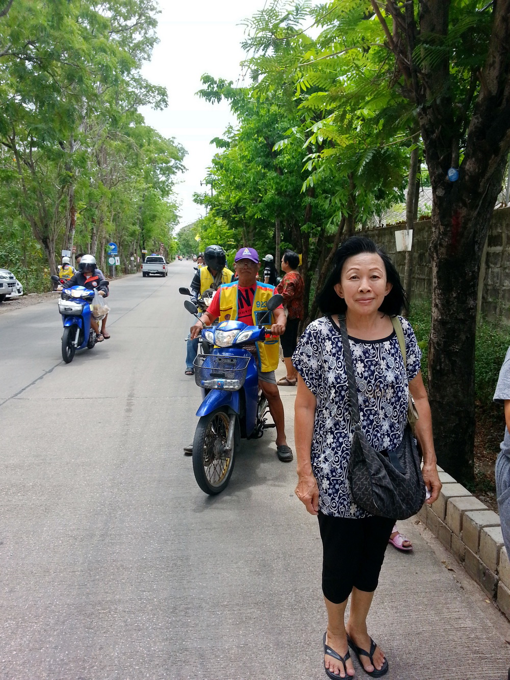 ที่ว่า ค ล่ อ ง เนี่ยยย ก็คือ แม่สามารถที่จะไปไหนมาไหนเองได้ด้วยรถเมล์บ้าง รถสองแถวบ้าง โดยที่ไม่ต้องง้อให้ลูกสาวพาไปเลย ... สถานที่ๆแม่ชอบไปมากที่สุดก็คือ “ตลาด” ค่ะ .. แม่ไปมาแล้วทุกๆ ตลาดที่แวดล้อมแถวๆ นั้น ไม่ว่าจะเป็น ตลาดอุดมสุข ตลาดกิ่งแก้ว ตลาดสำโรง ตลาดหนามแดง ตลาดปากน้ำ หรือไกลออกไปอีกนิดอย่างตลาดทองหล่อก็ไปเองมาแล้ว...