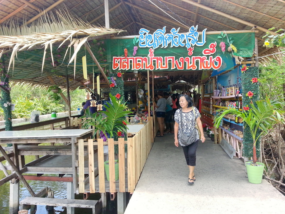 แว้นมาแป๊บบบเดียวก็ถึงแล้วค่ะ ต ล า ด น้ำ บา ง น้ำ ผึ้ ง... ทางเข้าตลาดมี 3 ทางนะคะ ที่เราเข้ามานี่น่าจะเป็นด้านหลัง