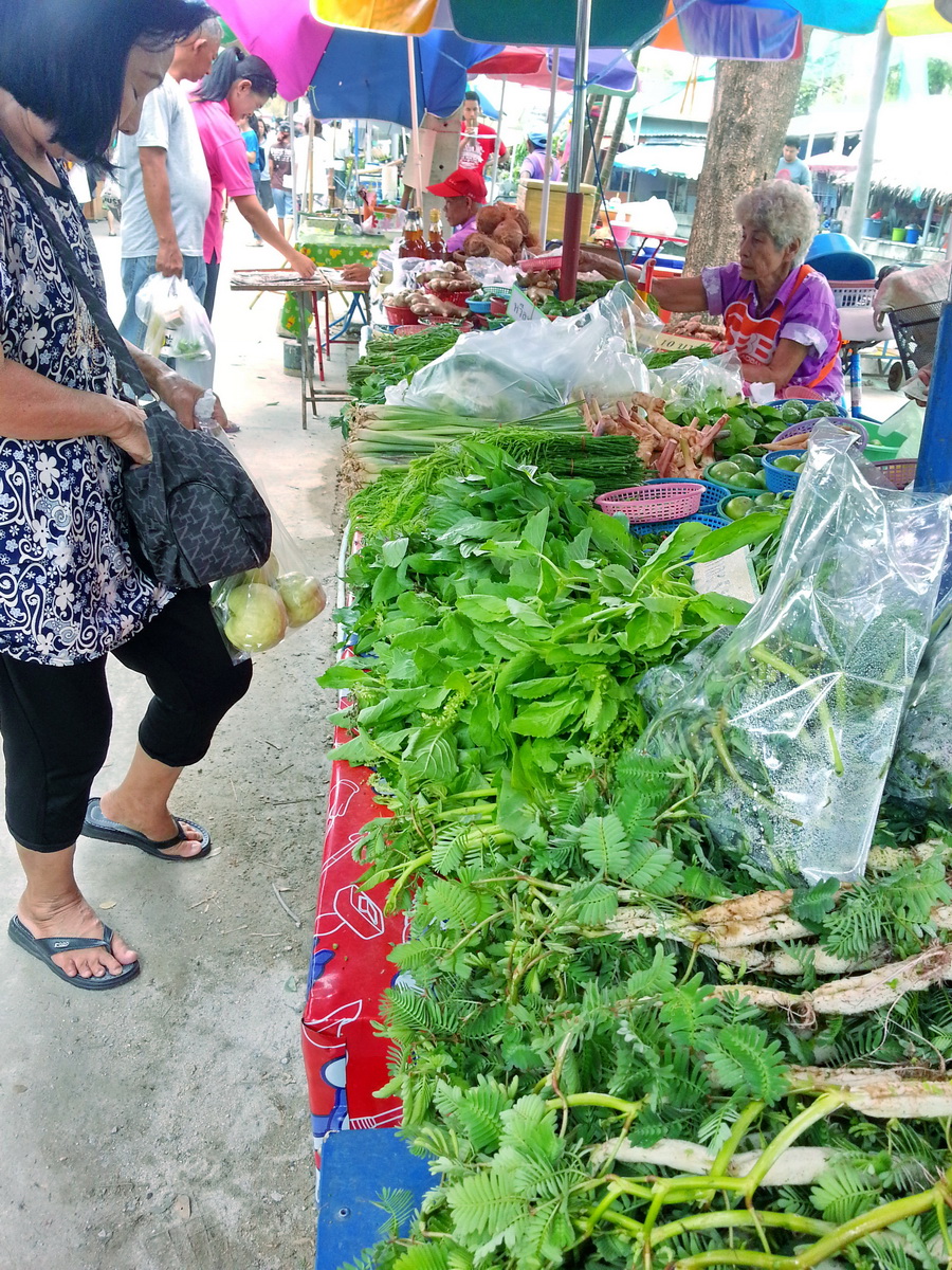 เดินทะลุมาอีกโซนนะคะเป็นทางที่จะออกไปด้านหน้าตลาด... แล้วแม่ก็แวะซื้อผักอีกแล้วววว โซนนี้ผักข้างรั้วเยอะมากเลยค่ะ ส่วนใหญ่ราคาก็จะไม่สูงเมื่อเทียบกับตลาดในกรุงเทพ .. และนี่ล่ะค่ะ เหตุผลที่แม่ “รัก” บางน้ำผึ้ง