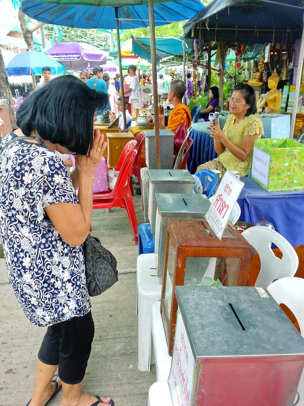 และเมื่อทะลุตลาดออกมาก็จะเจอกับบริเวณวัดบางน้ำผึ้งในค่ะ ใครอยากทำบุญ ไหว้พระ ถวายสังฆทาน ก็ได้เลย