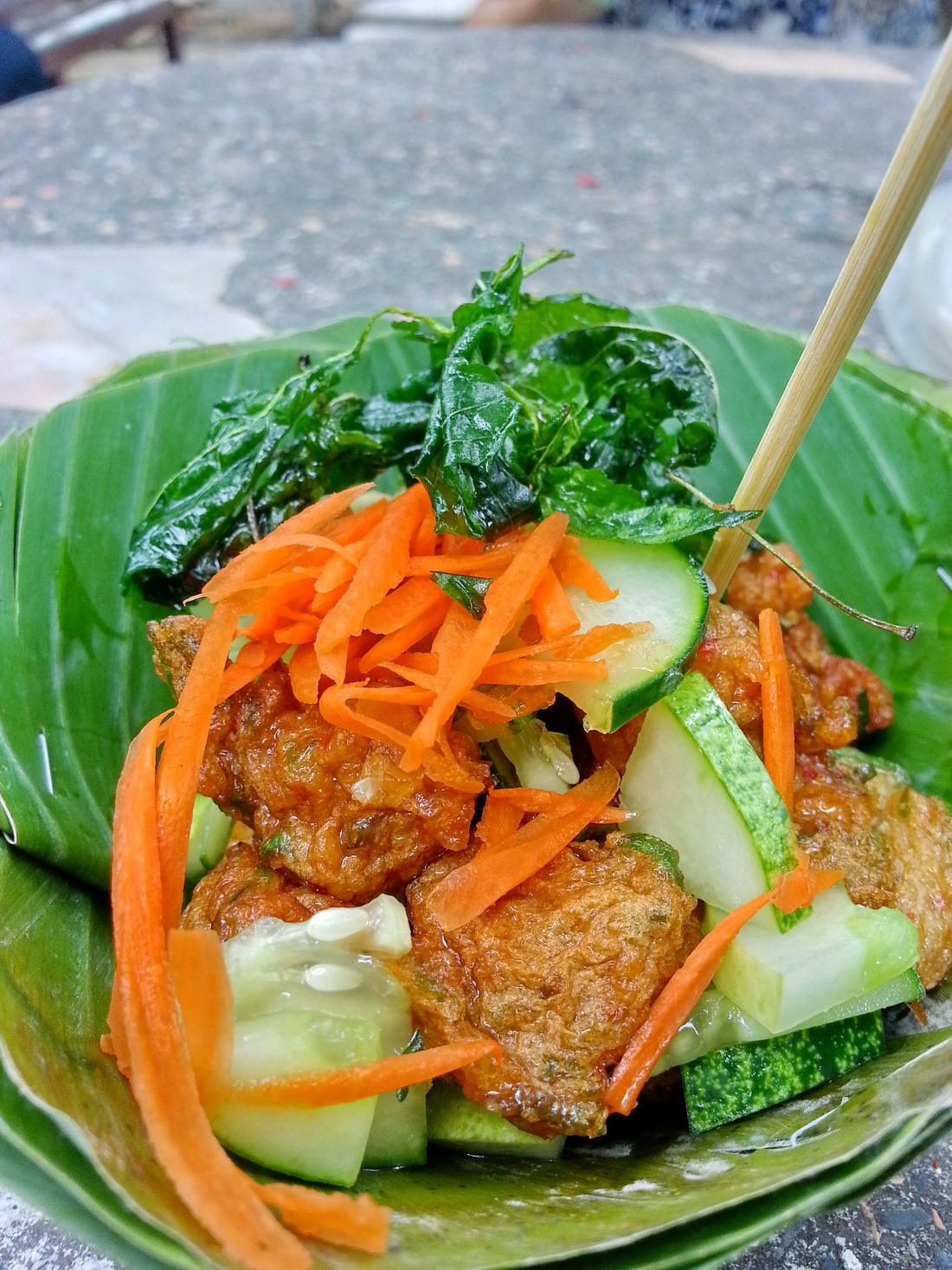 ทอดมันชิ้นพอดีคำ เหนียวกำลังดี (คนจัดฟันกินได้สบาย..) เสิร์ฟมาในกระทงใบตอง พร้อมน้ำจิ้มอาจาดที่ใส่แตงกวากรอบๆ และแครอทหั่นฝอย ...