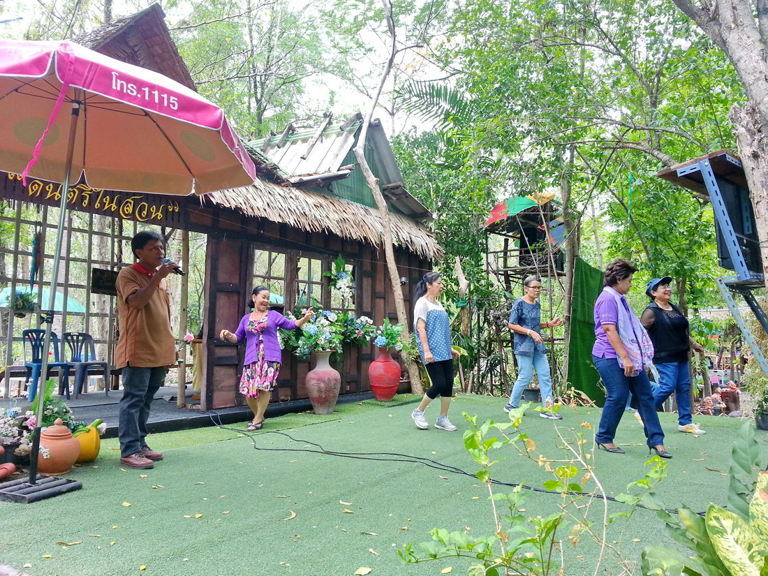 เค้าจะมีเวทีให้คนขึ้นไปร้องเพลงค่ะ เพลงที่ร้องส่วนมากก็จะเป็นแนวๆ สุนทราภรณ์ เช่น
