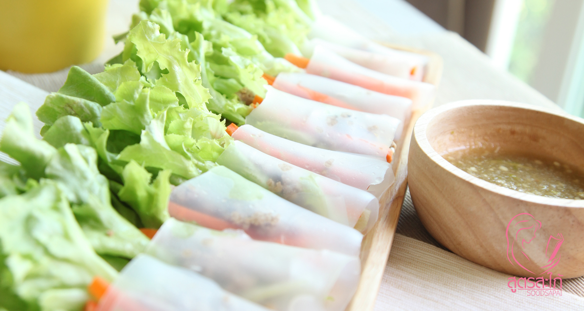 3.นำผักกาดวางลงบนแผ่นก่อนค่ะตามด้วยแครอท (ครัวไหนมีผักอะไรเพิ่มเช่นผักชีฝรั่ง ใบโหระพาใส่ไปได้เลยนะคะ จากนั้นตักหมูสับผัดที่เตรียมไว้ จากนั้นก็ห่อให้สวยงาม เบามือนะคะ โชคดีวันนี้มีน้าไก่มาช่วยห่อ