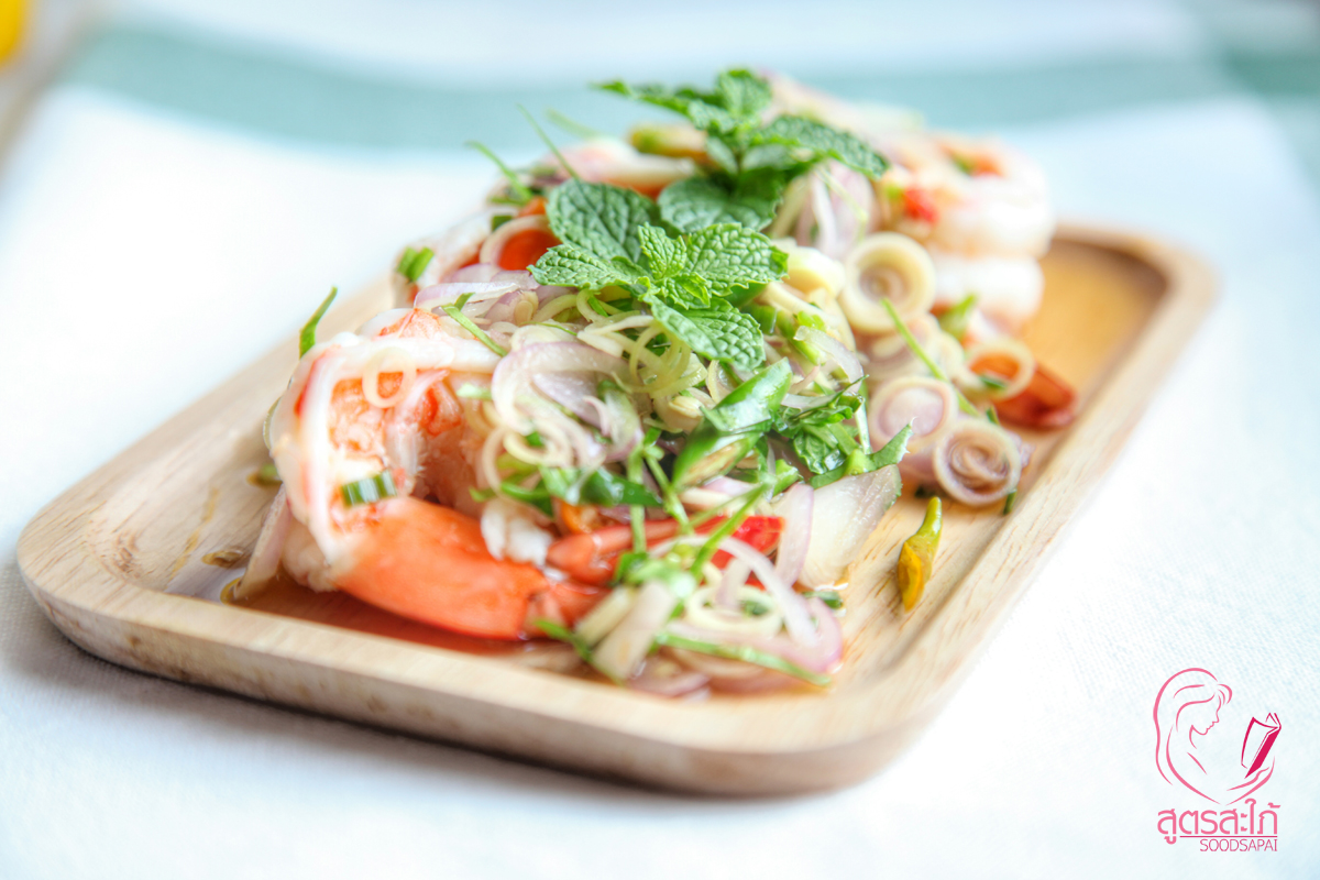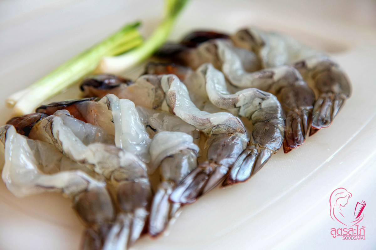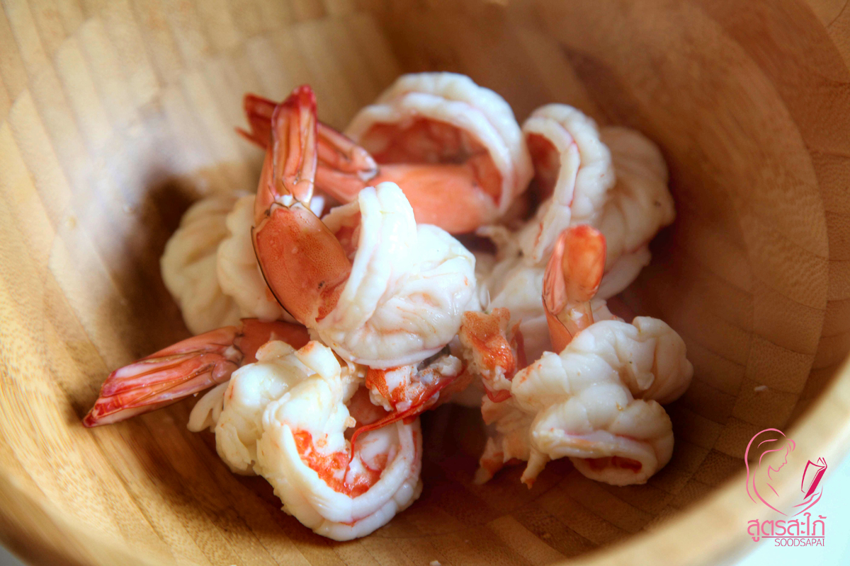 เตรียมไว้ ตักชิมรสแล้วนำไปคลุกเคล้ากับกุ้งที่เตรียมไว้
