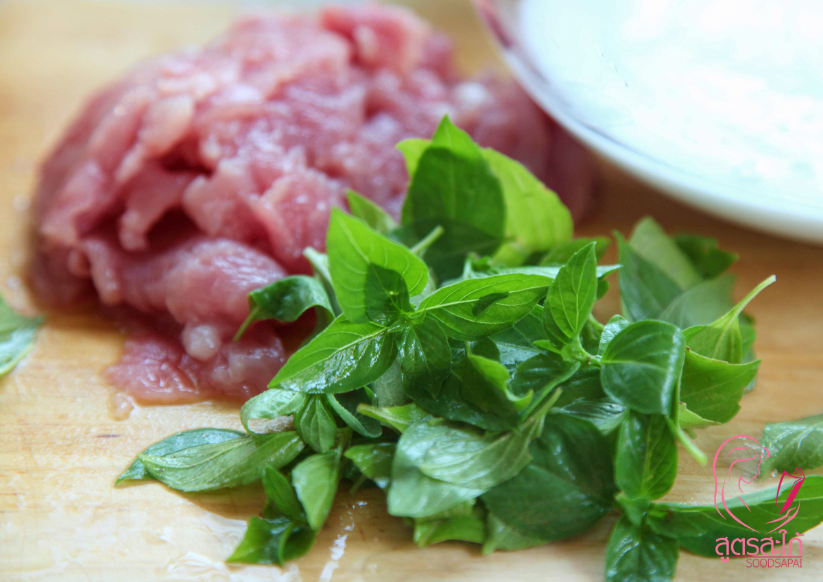 8. ใบโหระพาประมาณ 2หยิบมือ