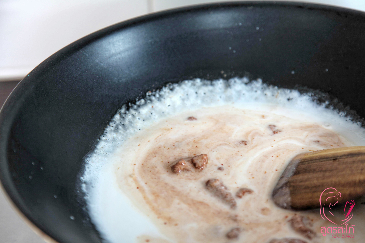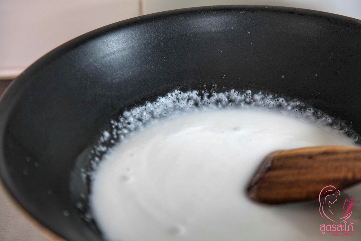 2. นำหางกะทิใส่หม้อตั้งไฟกลางค่ะ