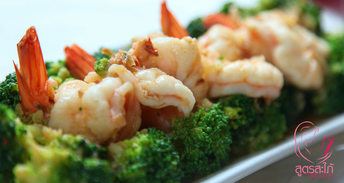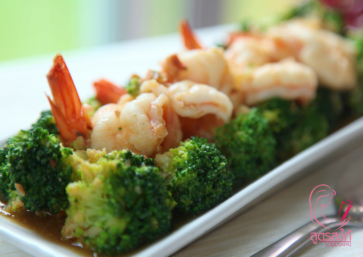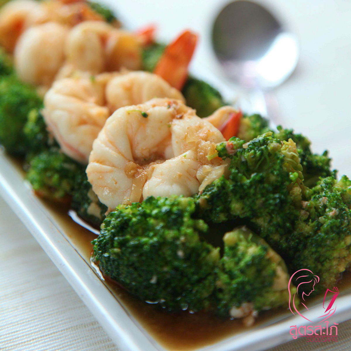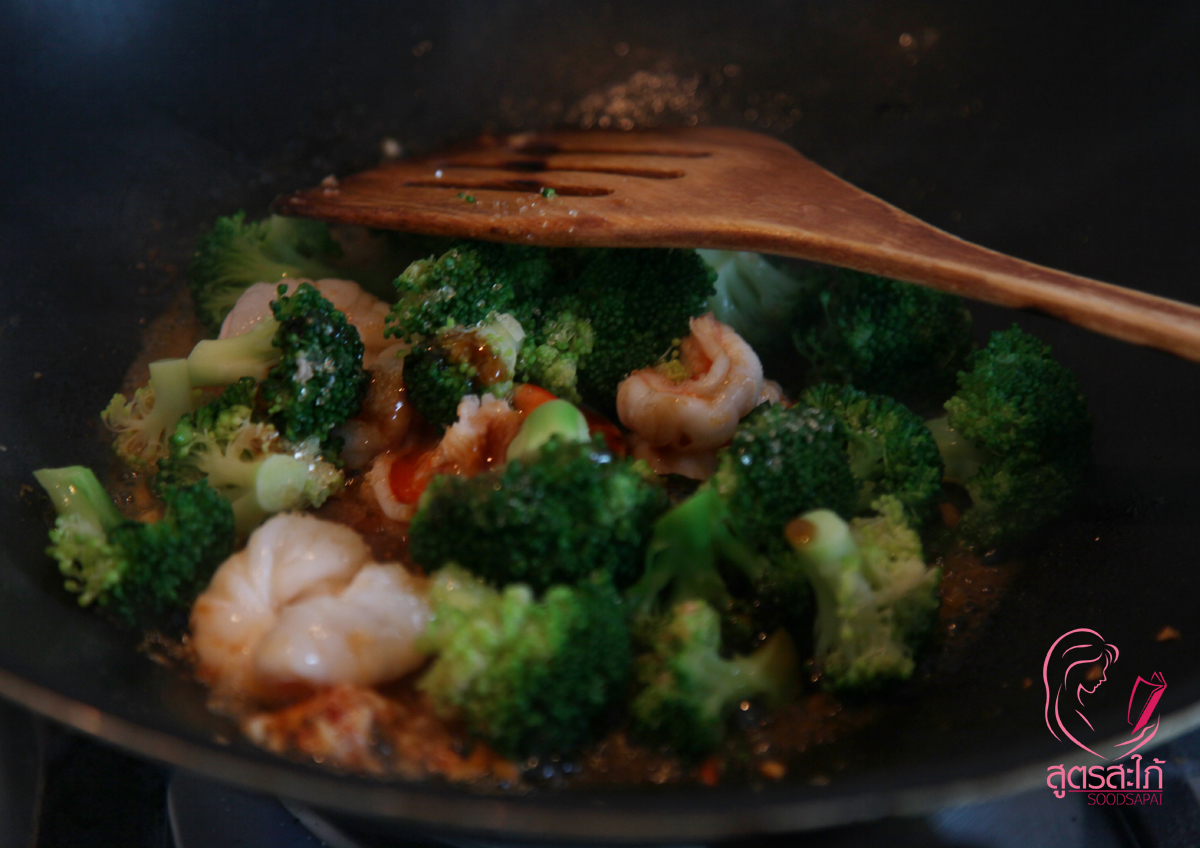 3. พอเนื้อกุ้งตึงๆ นำบล็อคโคลี่ลงผัด ปรุงรสด้วย น้ำมันหอย ซีอิ๊วขาว แล้วชิมและปรับรสตามชอบค่ะ
