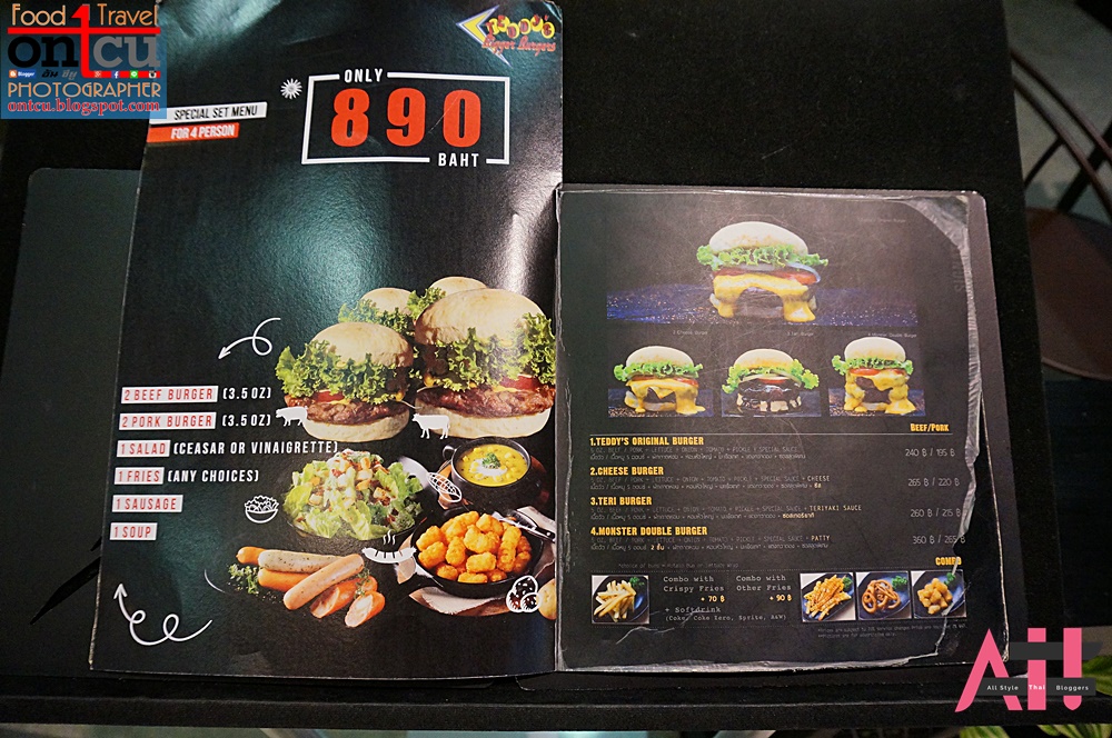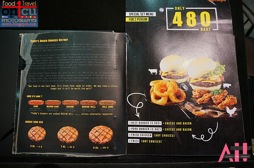 ก่อนอื่นมาทำความรู้เพิ่มกันอีกสักนิดครับเนื้อวัวของ Teddy's Bigger Burger ที่นำมาทำเบอเกอร์นั้นมี 3 ขนาดด้วยกันคือ 5 oz. 7 oz. และ 9 oz.ขนาดมาตรฐานคือ 5 oz. และสามารถเพิ่มขนาดเนื้อหรือจำนวนชิ้นเนื้อได้โดยการเพิ่มราคา +60 บาท และ +90 บาท ต่อ ชิ้น ตามลำดับ