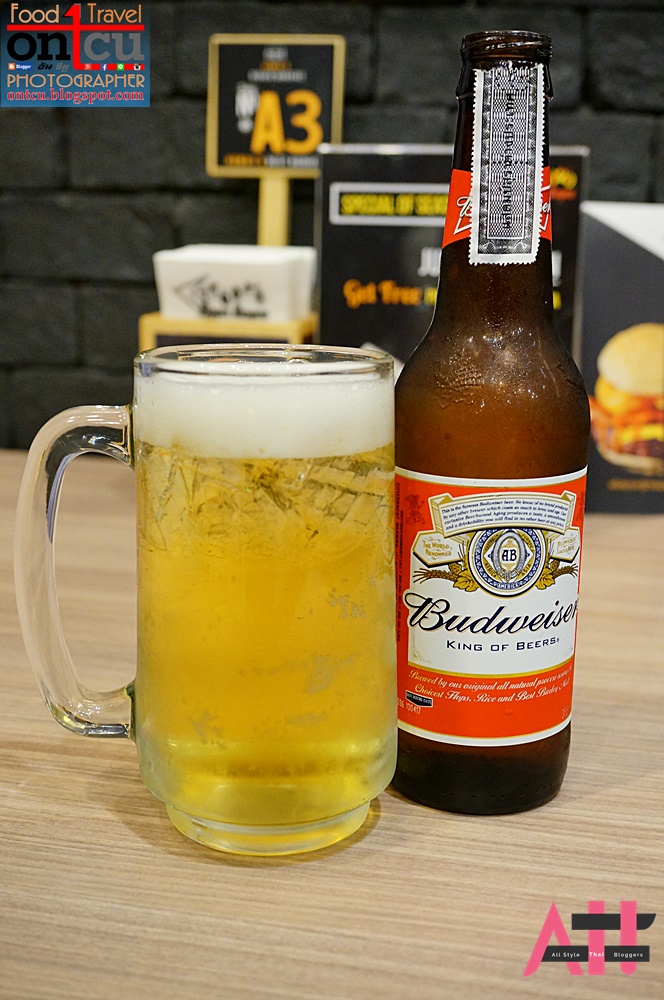 สำหรับผมถ้าจัดเบอเกอร์ ขอเป็นเบียร์จะเยี่ยมมากเลยจัด เบียร์อเมริกันอย่าง Budweiser มาคู่กับเบอเกอร์อเมริกัน-ฮาวายกันครับ ราคาขวดละ 180+ บาทแล้วก็จะมีเบียร์อีก 2 ยี่ห้อให้เลือกครับ