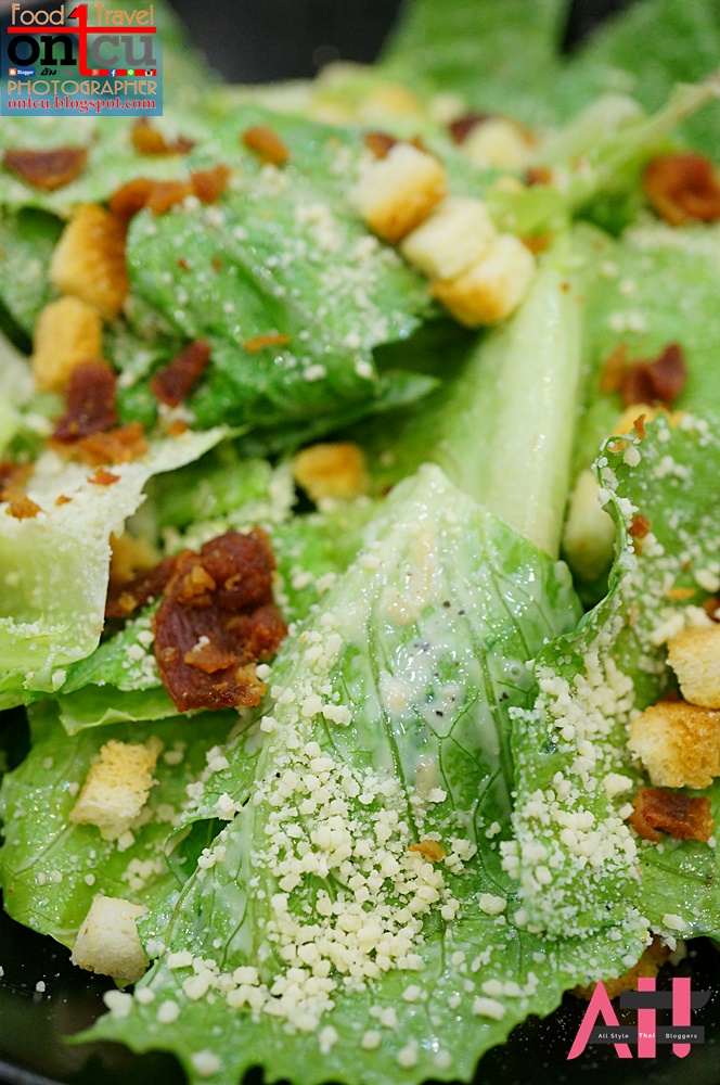 หลังจากได้ภาพที่ตั้งใจไว้แล้ว ก็ออกมาที่โต๊ะอาหารที่สั่งไปก็ทยอยออกมา เป็นอาหารจาก Side Dish อย่างแรกที่มาเสิร์ฟ เป็น Ceasar Salad ราคา 160+ บาท