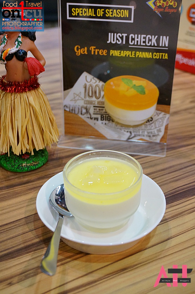 และปิดท้ายด้วยของหวานอย่าง PineApple Panna Cottaพานาค็อตต้าสับปะรด รสชาตินุ่ม ๆ ละมุนลิ้นเปรี้ยวสับปะรด ได้รสชาติสดชื่นปิดท้ายมื้อดีเลยครับที่ตอนนี้มีโปรโมชั่น เพียงแค่เช็คอิน ก็ได้รับฟรีกันเลยครับ