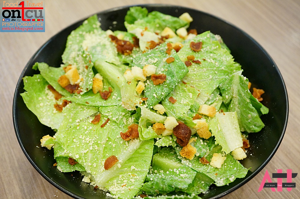 สลัดจานนี้รสดีมากเบคอนกรอบ ชีสและขนมปัง รวมถึงน้ำสลัดจัดมาได้พอดีกับผักในจานเหมาะกับการเริ่มต้นมื้อหนักนะครับ เพราะผักจะช่วยให้กระเพาะเราเริ่มทำงานอย่างเบา ๆ เป็นการวอร์มอัพก่อนจะจัดเบอเกอร์เนื้อชิ้นใหญ่ ๆ ตามลงไปครับ