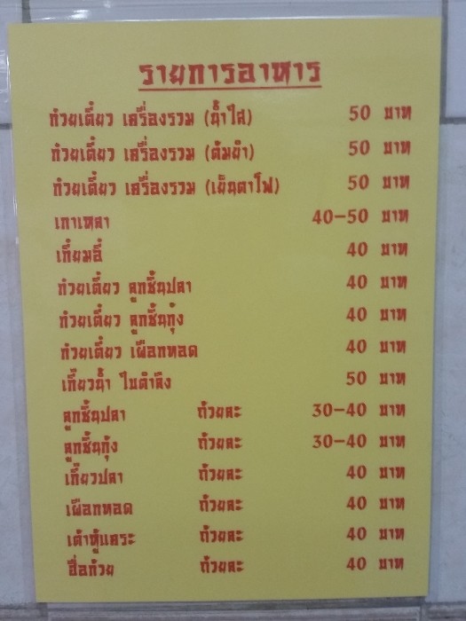 เส้นเล็กแห้ง 50 บาท ท่านที่รู้สึกไม่ดีกับร้านที่ใช้ชามใหญ่ แล้วมีก๋วยเตี๋ยวอยู่ไม่ถึงครึ่งชาม คงจะไม่ถูกใจแน่ ชายกางก็ในนิยามพวกนี้ว่า “ ก๋วยเตี๋ยวชะโงกหน้า ” คือวางแล้วต้องชะเง้อลงไปมองกันนิดนึง ... เอาน่า ขำ ๆ ก๋วยเตี๋ยวแคะ มักจะไม่ได้ปรุงอะไรมาให้เราเลย เราต้องมา Mo เองนะครับ ใส่เครื่องประทินรสลงไป แต่อย่าเพลิน เดี๋ยวกินไม่ได้ คลุกให้เข้ากัน ชิมให้ถูกปาก ก็ลุยกันไป เกาเหลาเยนตาโฟ 50 บาท ชามนี้เอามาปรุงรสเบา ๆ ไว้ซดแก้ระคายคอจากก๋วยเตี๋ยวแห้งน่ะครับ เอารสจัดพอท้วม ๆ พอ เส้นใหญ่เยนตาโฟ 50 บาท เค้าปรุงรสดั้งเดิมมาให้แบบเบา ๆ ใครชอบจัดจี๊ด เติมลงไปตามชอบเลยครับ