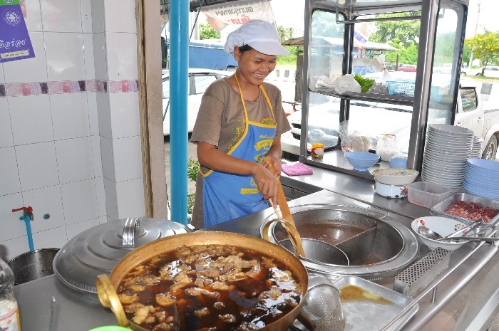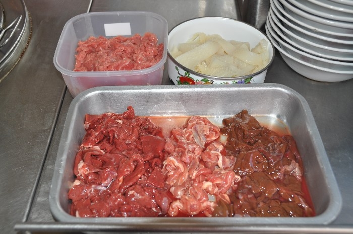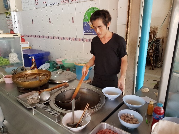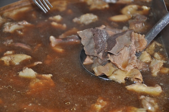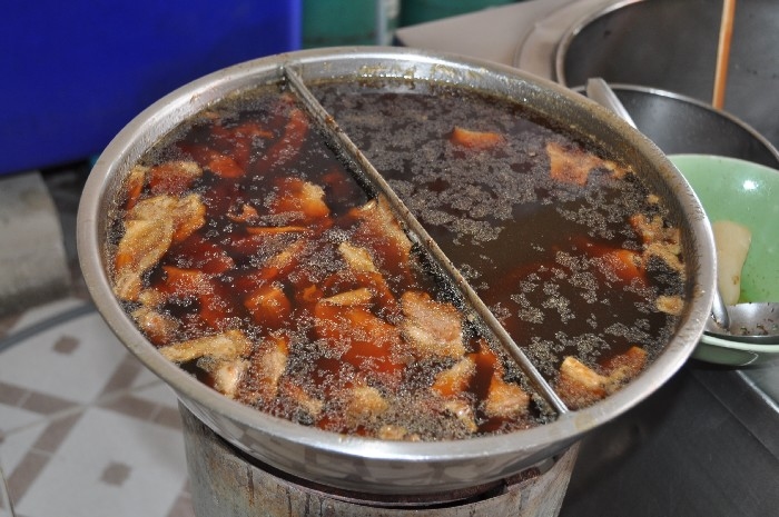 สำรวจหน้าร้าน เค้าแยกหม้อชัดเจน เนื้อวัวและเนื้อหมู น้ำซุบ น้ำลวกเส้น เดือดพล่าน เป็นสิ่งที่ดี หม้อทองเหลืองใบโต ภายในมีเนื้อตุ๋นนิ่ม ๆ บรรจุเต็มอัตราศึก เนื้อสด เนื้อน่องลายสด ตับ สีสดใส และยังมี เนื้อสด ที่หมักตามตำรับของบางโพ นิ่ม ๆ กินอร่อย รวมทั้งผ้าขี้ริ้วอีกด้วย ฝั่งหมู จะมีหมูตุ๋นอ่างโต และหมูสดหมักนุ่ม ๆ ที่แช่เย็นไว้ตลอด บนโต๊ะ มีเครื่องประทินรสครบครัน
