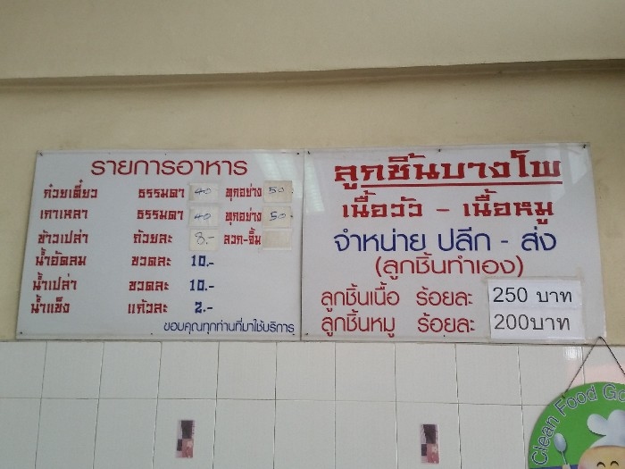 ถนนราชพฤกษ์ จากวงเวียนราชพฤกษ์ ให้ใช้ทางคู่ขนาน มุ่งหน้ามาทางที่เราจะไปปิ่นเกล้า – เพชรเกษม เราจะผ่าน Home Pro ทางขวามือมาเรื่อย ๆ จนเห็น SB Design ก็ให้ชะลอรถ เตรียมหาที่จอด เพราะร้านลูกชิ้นบางโพ อยู่ซ้ายมือของท่านแล้วครับ ชายกางไปกินร้านนี้ตั้งแต่ยุคแรก ๆ ที่ถนนราชพฤกษ์ยังไม่เรียบร้อยดีนัก หน้าร้านเค้าครับ หนุ่มติ๊ก ลงหน้าเตาเองตลอด นอกจากมีธุระจำเป็นจริง ๆ วันเสาร์ – อาทิตย์ ก็จะมีน้องแน๊ท กำลังใจของหนุ่มติ๊ก มาช่วยงานหน้าร้านด้วยอีกแรงครับ ภายในร้านเค้า ดูสะอาดตา จัดโต๊ะดูดีมีระเบียบ มาดูป้ายราคา ค่าอร่อยในแบบต่าง ๆ กันครับ