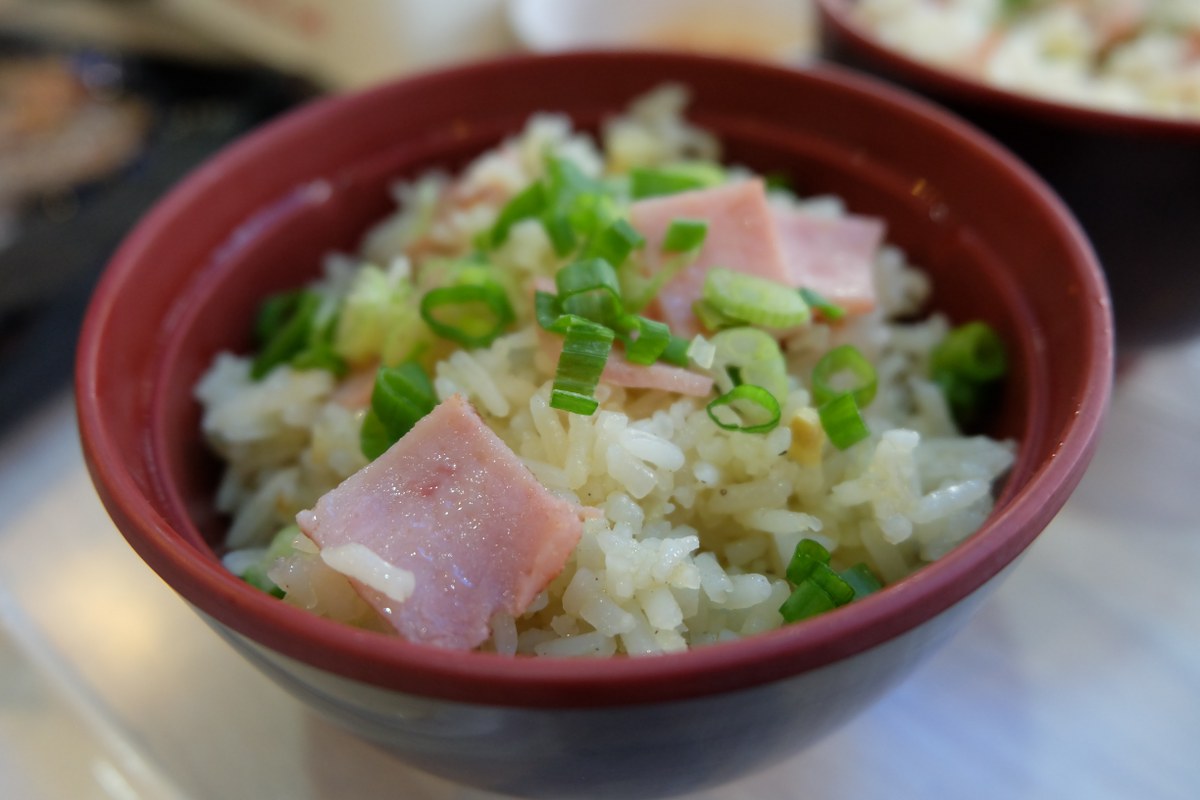 รอสักพัก ข้าวผัดกระเทียมมาเสริฟ เราสั่งข้าวผัดกระเทียมเบคอน กับข้าวผัดกระเทียมแฮมไป อย่างละถ้วย