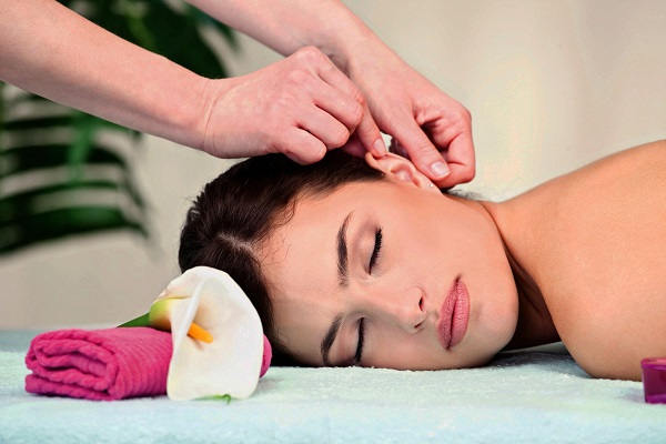 การนั่งพักสบายๆ แตะปลายนิ้วทั้งสองข้างที่ใบหู เคลื่อนนิ้วไปยังส่วนบนของหู จากนั้นบีบนวดและคลี่รอยพับ ของใบหูทั้งสองข้างออก ค่อยๆ เคลื่อนนิ้วลงมานวดบริเวณอื่นๆ ของใบหู ดึงเบาๆ เมื่อถึงติ่งหู ดึงลง ให้ทำซ้ำกัน 2 ครั้ง วิธีนี้จะส่งผลให้กระตุ้นการได้ยิน และทำให้ความเข้าใจดีขึ้น เพราะเป็นการคลายเส้นประสาทบริเวณใบหูที่เชื่อมสมองโล่งขึ้นมาได้