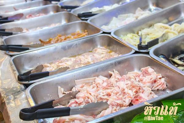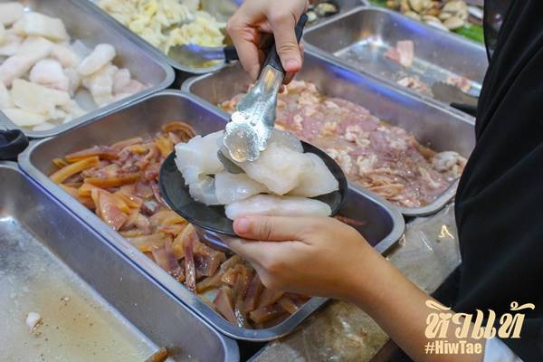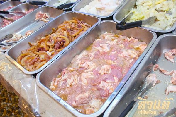 พูดจริงๆว่าเลือกกินไม่ถูก อ่อ แน่นอนว่า เนื้อหมู เนื้อไก่ หมักงา หมักพริกไทยดำ ลูกชิ้นปลา ผักสดต่างๆ ท็อปปิ้งเบสิกของหมูกะทะก็มีให้เลือกอย่างครบครัน