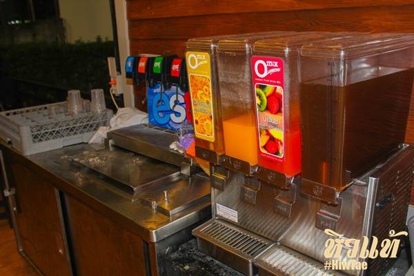 จากนั้นเรามาดูที่เครื่องดื่มและอาหารหวาน นอกจากน้ำอัดลมแล้วยังมีน้ำดื่ม น้ำผลไม้ให้เลือก หรือจะเปลี่ยนไปทานของหวาน จะบอกว่าประทับใจกับไอศครีมมาก เพราะมีให้เลือกมากกว่า 10 รส พร้อมเครื่องของหวานราดได้ไม่อั้น