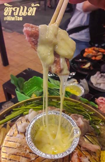 ส่วนใครที่มาร้านนี้เพราะ ชีส ก็มีให้จิ้มจุ่มกันอย่างมันส์ ในราคาถ้วยละ 50 บาท จัดให้เป็นถ้วยฟอยล์ สามารถเอามาตั้งในเตาให้ร้อนก่อนจิ้มได้สะดวกมากๆ ปิ้งเสร็จ ต้มสุกก็จิ้มชีสต่อให้ยืดได้เลย