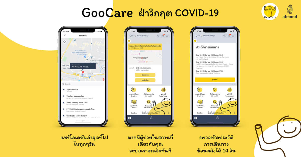 ช่วงเวลาแบบนี้ ทำให้เกิดการนำเทคโนโลยีเข้ามาปรับใช้กับสถานการณ์ที่โควิด-19 กำลังแพร่ระบาด ซึ่งเป็นการเริ่มทำขึ้นจากการที่จะช่วยให้ทุกคนลดความวิตกกังวล GooCare หรือ กู๋แคร์ ที่เปรียบเสมือนเพื่อนคอยช่วยเหลือ และติดตามดูแลผู้ใช้งานในสถานการณ์วิกฤตอย่างใกล้ชิด เพื่อให้ทุกคนตามสถานการณ์กันทันด้วย