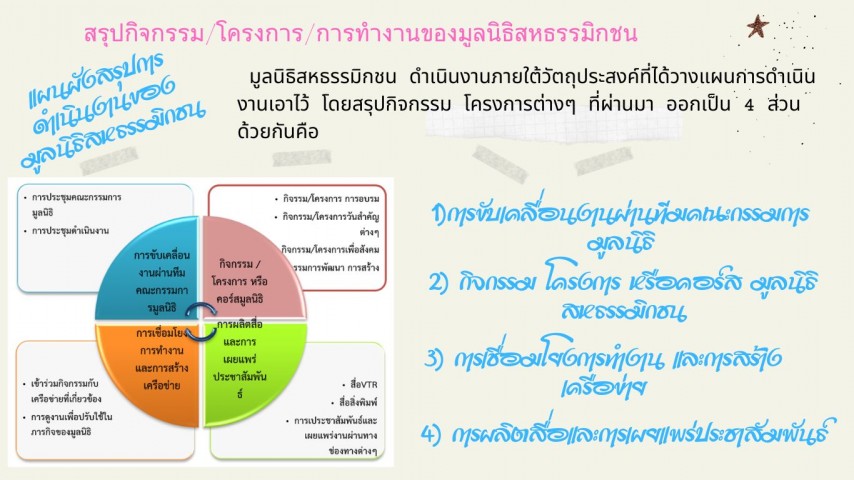 สรุปกิจกรรม/โครงการ/การทำงานของมูลนิธิสหธรรมิกชน