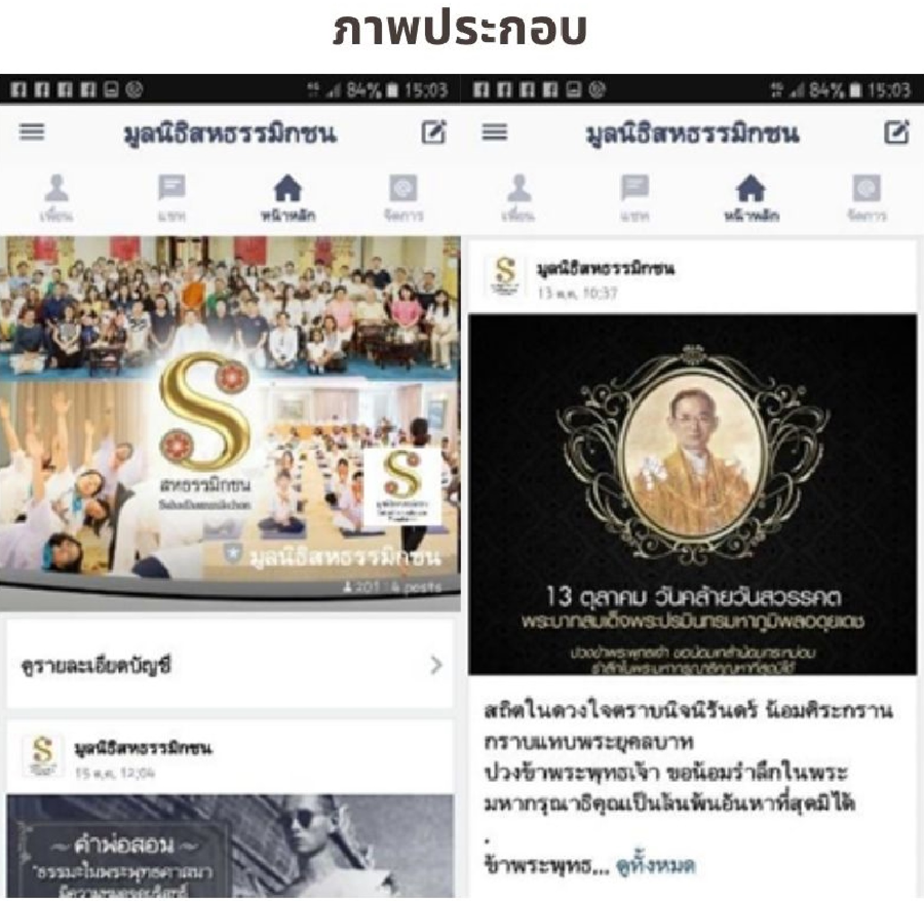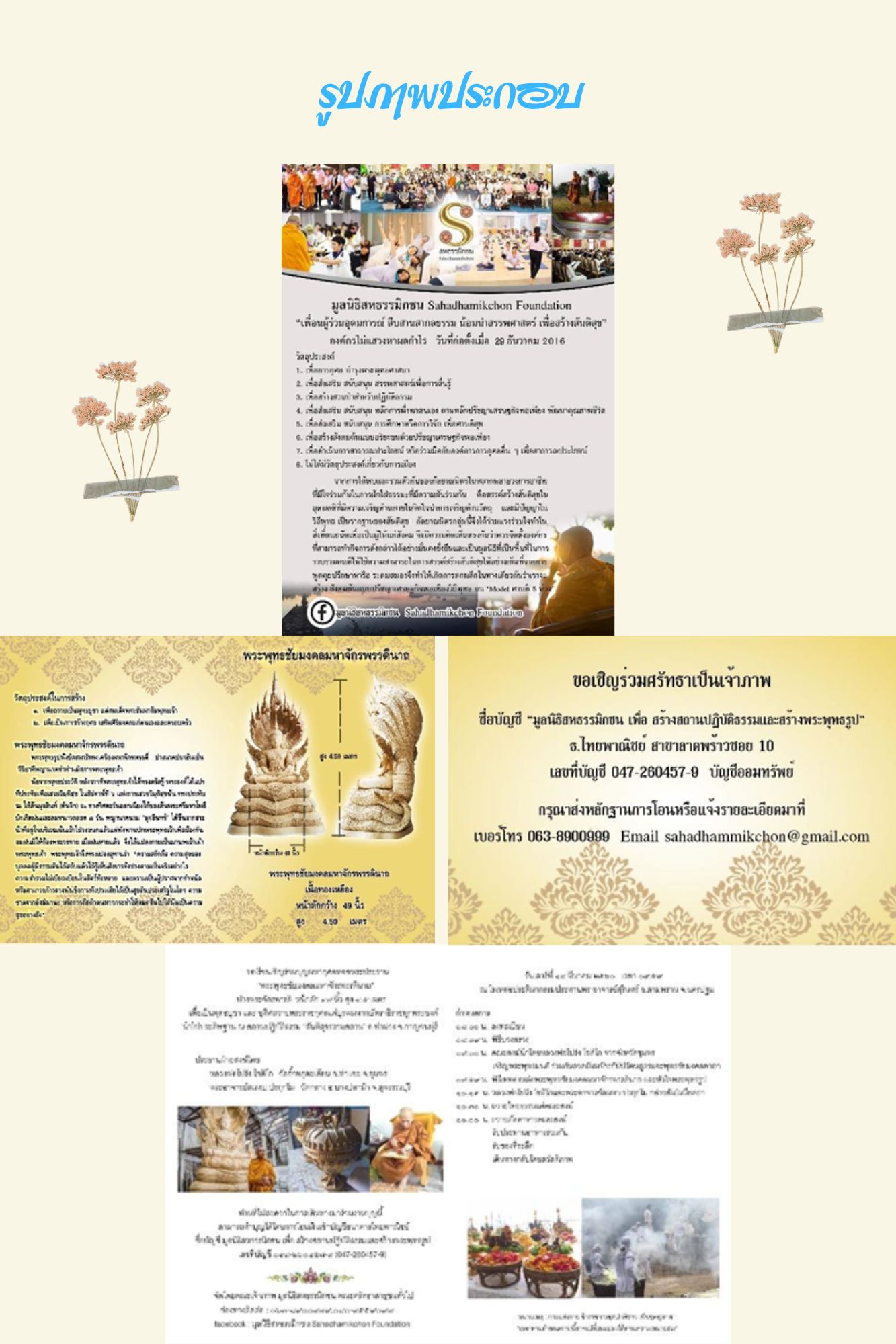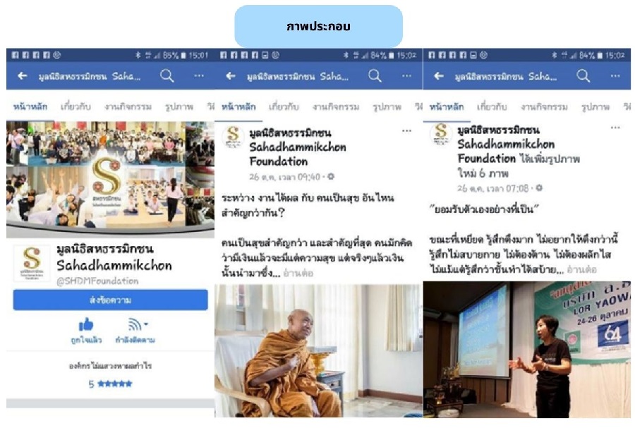 1) การเผยแพร่และประชาสัมพันธ์ผ่านช่องทาง Face book ใช้ชื่อว่า มูลนิธิสหธรรมิกชน Sahadhammikchon