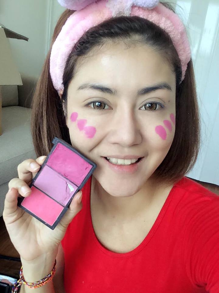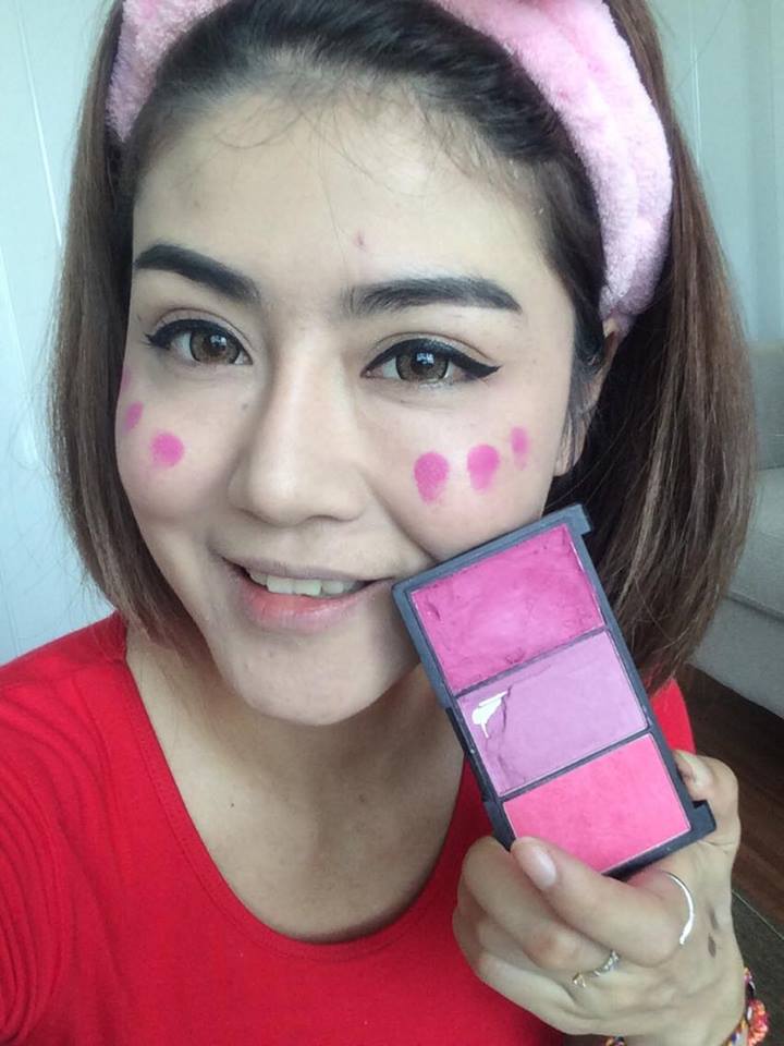 ลงบรัชออนแบบครีมซ้ำอีกทีค่ะ เพื่อเพิ่มความติดทนทาน