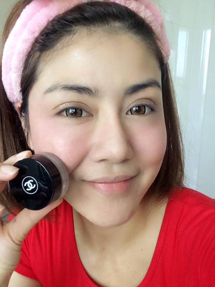 อุ๊เลือกใช้บรัชออนแบบครีม เพราะจะทำให้ติดทนทานมากกว่าแบบฝุ่นค่ะ และควรลงขั้นตอนก่อนลงแป้งไปก่อนรอบนึงค่ะ