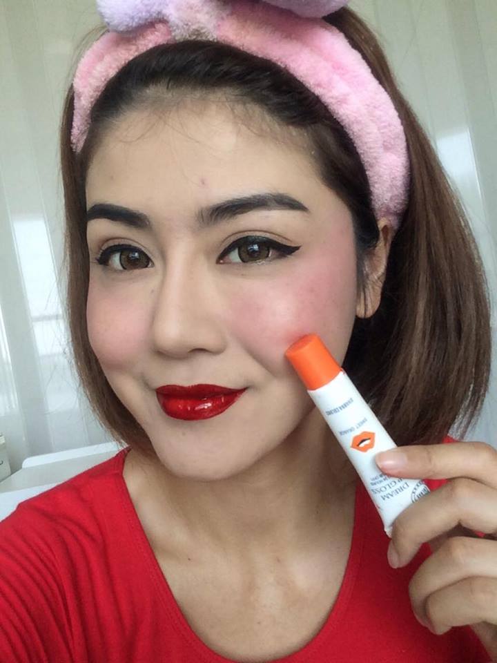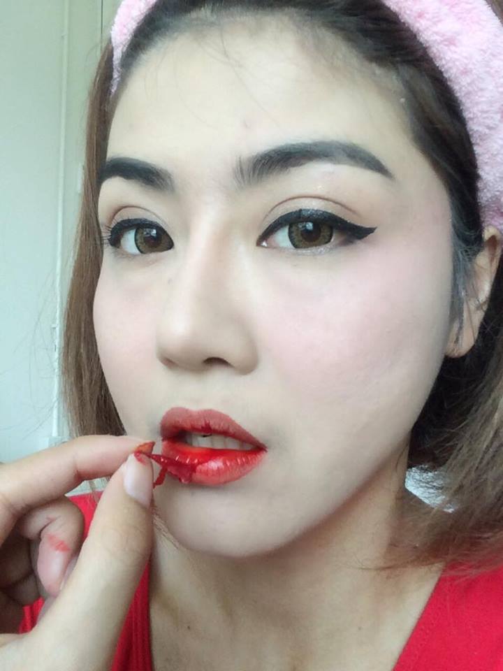 อุ๊เลือกใช้ลิปแทตทูค่ะ เวลาใช้ให้ทาฉ่ำๆ ทั่วปากเลยค่ะ พอแห้งแล้วลอกออก ตัวนี้ติดทนทานมากๆ เลยค่ะ