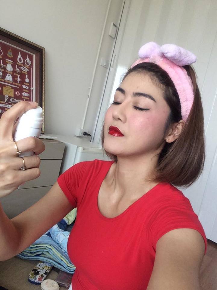 น้ำแร่ : จากนั้นก็ฉีดน้ำแร่ก่อน 1 รอบค่ะ เพื่อให้รองพื้นเซ็ตตัวและกลืนไปกับผิว