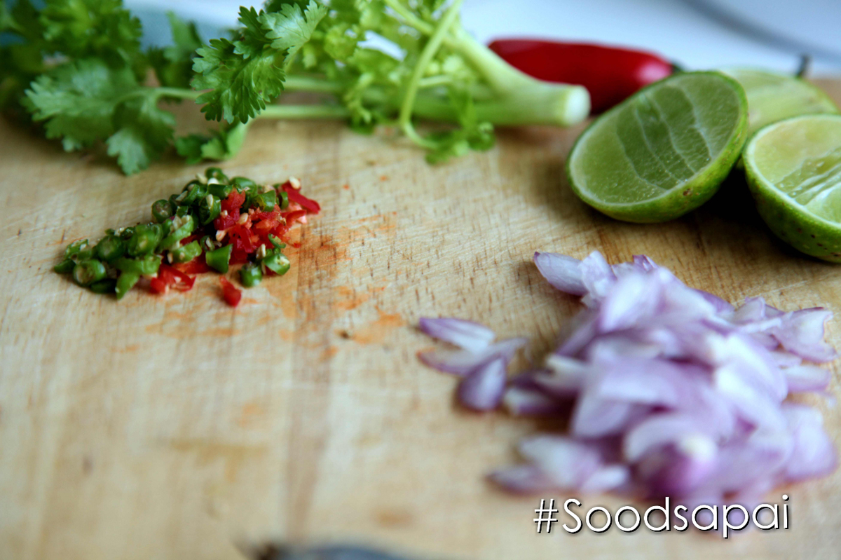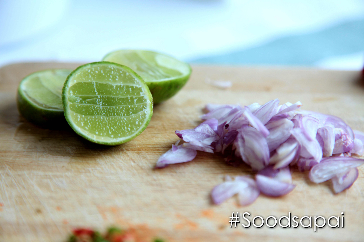 2. ทำน้ำยำค่ะ นำน้ำตาลทรายใส่ในน้ำมะนาว คนจนน้ำตาลทรายละลาย แล้วใส่หอมแดงและพริกขี้หนูสวนซอยลง คลุกเคล้าให้เข้ากันชิมและปรับรสตามชอบค่ะ นำไปราดบนปลาอินทรีย์ที่เตรียมไว้และตักเสริฟได้เลยค่ะ