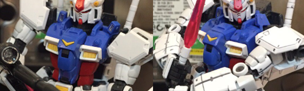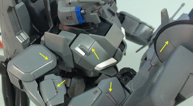 จากรูปข้างต้นจะเห็นบางบางมุมที่มีการประกอบชิ้นส่วนซ้อนทับเข้าไป ถ้าเราไม่ตัดเส้นก่อนจะไม่สามารถตัดเส้นให้ต่อเนื่องได้อย่างที่ควรจะเป็น ดังนั้นให้ลองดูคู่มือให้เห็นภาพล่วงหน้าก่อนว่าชิ้นส่วนไหนอยู่ในอยู่นอก ซึ่งถ้าเป็นชิ้นส่วนเกราะภายนอกสุดก็สามารถตัดเส้นทีหลังได้