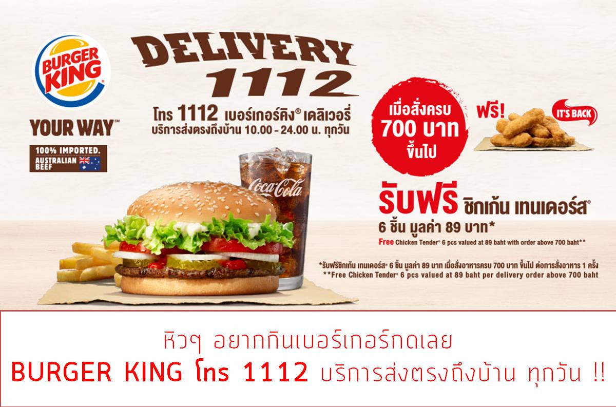 11.หิวๆ อยากกินเบอร์เกอร์กดเลย BURGER KING โทร 1112 บริการส่งตรงถึงบ้าน ทุกวัน !!