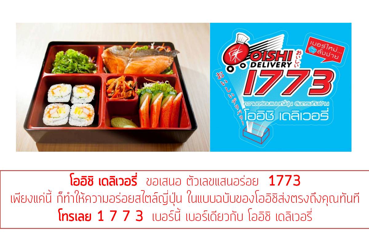 เพียงแค่นี้ ก็ทำให้ความอร่อยสไตล์ญี่ปุ่น ในแบบฉบับของโออิชิส่งตรงถึงคุณทันที โทรเลย 1 7 7 3 เบอร์นี้ เบอร์เดียวกับ โออิชิ เดลิเวอรี่