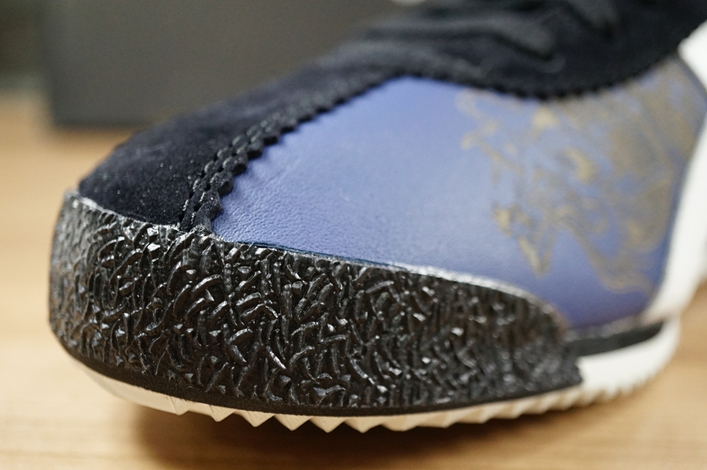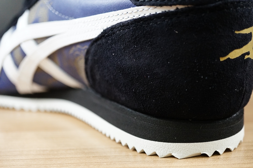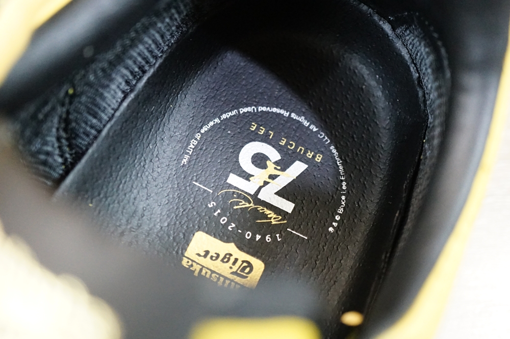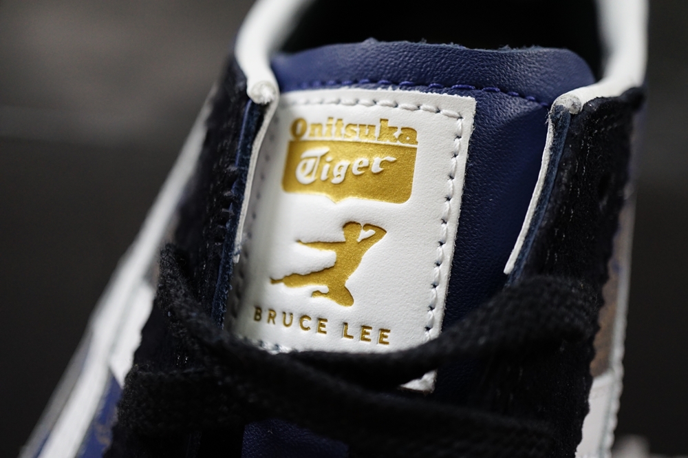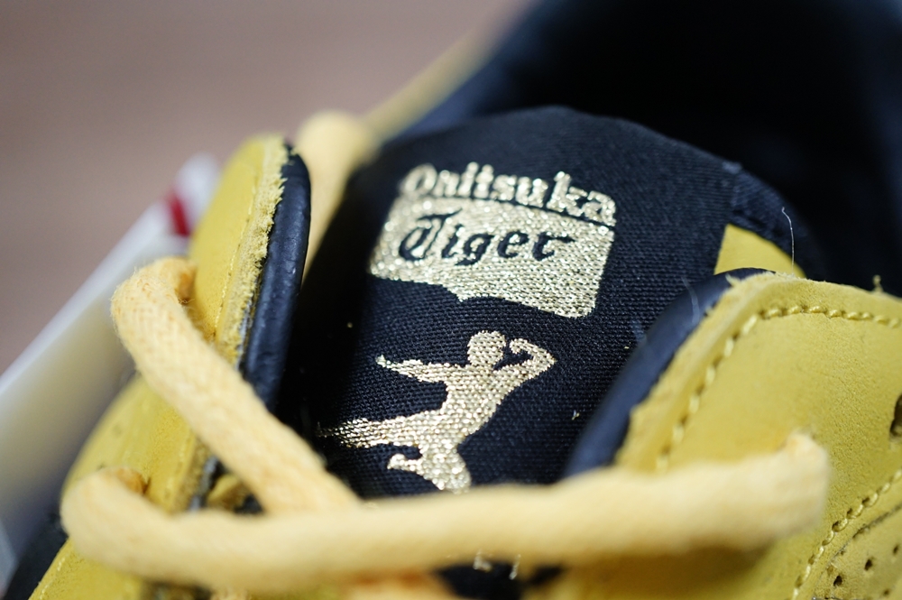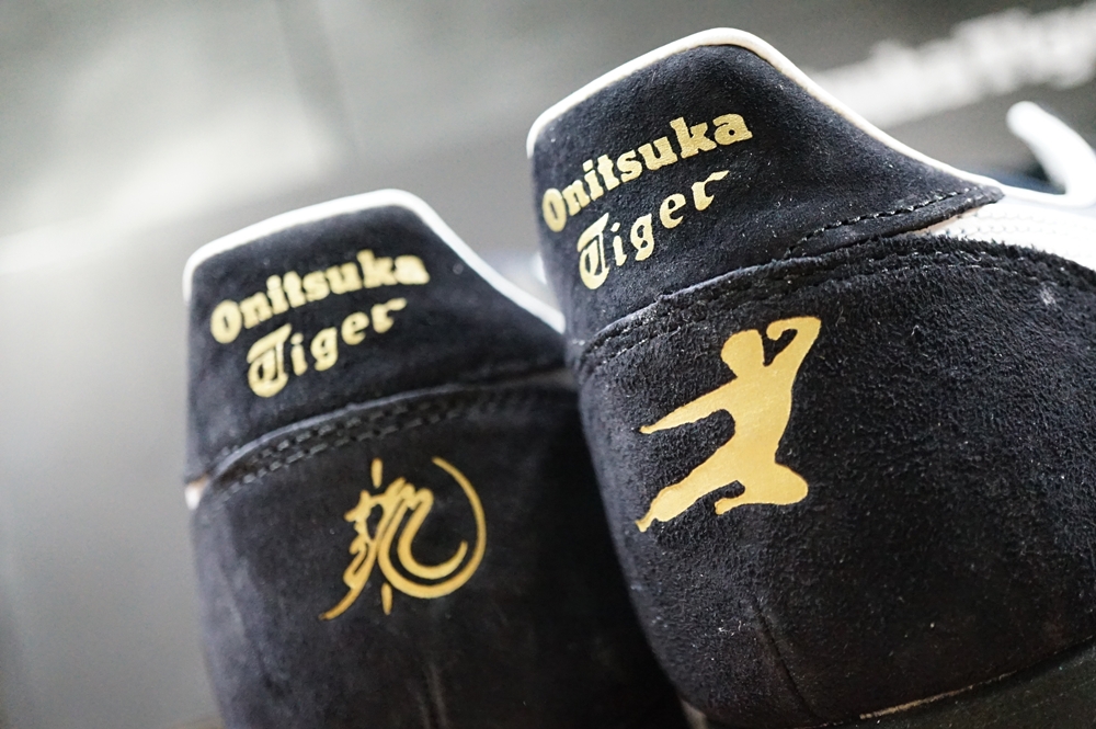 รุ่นนี้จะเป็นการสกรีนสัญลักษณ์รูปนักกังฟู(Kickman) และชื่อไว้เป็นสีทอง จะต่างจากรุ่น Onitsuka Tiger Corsair “JEET KUNE DO” ที่เป็นงานสลักบนหนัง เพราะดีไซน์อยากจะทำให้แตกต่างกัน เลยใช้วิธีสกรีนใส่พื้นสีดำแล้วนำมาเย็บติด สวยงามพอๆกันครับ แล้วแต่ความชอบครับ