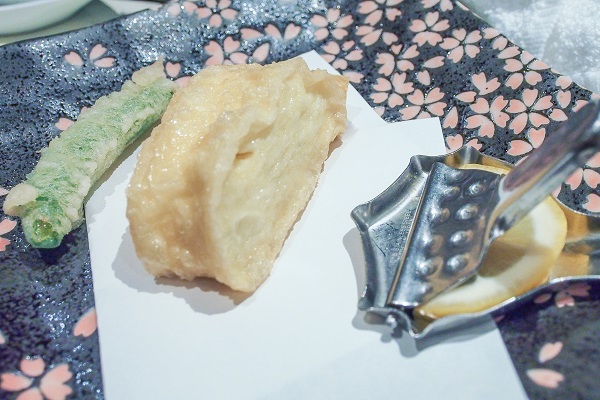 ยูบะ แปลว่า ฟองเต้าหู้ ,  อาเกะ คือการทอดจนสุกค่ะ ซึ่งจานนี้เป็นเนื้อปลาทาระ(เนื้อปลาขาว) พันฟองเต้าหู้ทอดร้อน ๆ ไม่อมน้ำมันแม้แต่น้อย เวลารับประทานบีบน้ำเลมอน เข้าเพื่อรสชาติที่กลมกล่อมสุดๆ