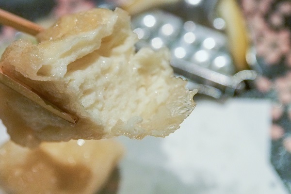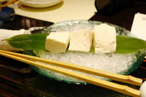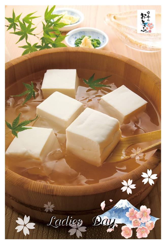 เต้าหู้ทำสดพร้อมซอสมาโบ และซอสอังคาเคะ  ตักมาเป็นเจลลี่เต้าหู้แล้วราดซอส สามารถมาสัมผัสการทำเต้าหู้ด้วยตัวเอง ที่จะทำหลงรักเต้าหู้เข้าไปอีก
