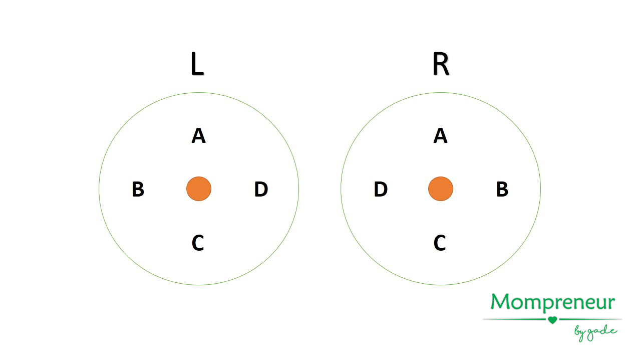 ลองนึกภาพเต้าเรา พร้อมตำแหน่งของก้อน A, B, C และ D นะคะ