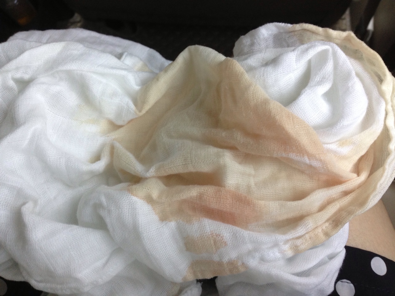 ภาพด้านล่างนี้คือ ผ้าที่ชุ่มไปด้วยเลือดผสมกับน้ำนม