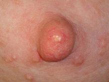 Note: White Dot หรือจุดขาวที่หัวนม มักเป็นผลจากเศษไขมัน และ/หรือเยื่อบุผิวหลุดลอกไม่หมด กลายเป็นตุ่มอุดตันบริเวณรูเปิดของหัวนม อาจเป็นจุดขาว ๆ คล้ายตุ่มหนอง หรือเป็นตุ่มพองเล็กๆ ขนาดมักไม่เกิน 1 มม.