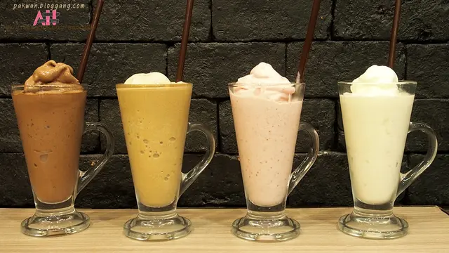 วันนั้นสั่งกันมาสี่รสชาติค่ะ Chocolate / Coffee / Strawberry / Vanilla Shake