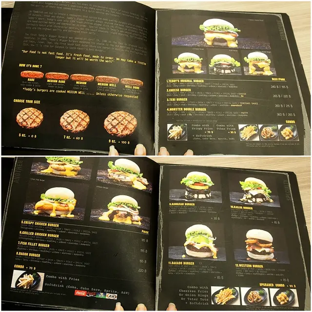 2. จากนั้นเลือกว่าจะเป็นเบอร์เกอร์อะไรนะคะ ซึ่งสำหรับคนรักเนื้อก็จะมีให้เลือกระหว่าง Teddy's Original Burger / Cheese Burger / Teri Burger / Monster Double Burger ค่ะ และอีกสี่เมนูสำหรับคนสายไม่กินเนื้อนะคะ ไม่ว่าจะเป็น Crispy Chicken Burger / Grilled Chicken Burger / Fish Fillet Burger / Bacon Burger ค่ะ